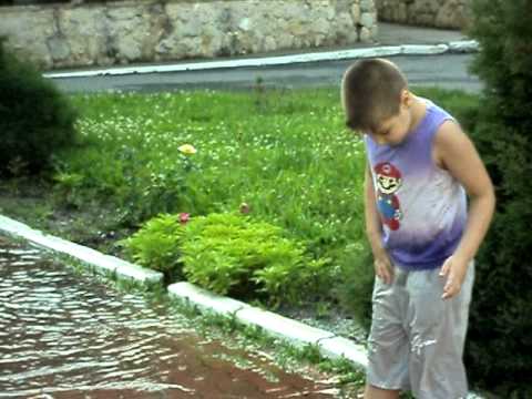 Pe tot parcursul drumului spre manastiri a plouat cu galeata,la Sf Andrei,am gasit o balta,iar Mihai,nu a ratat-o!